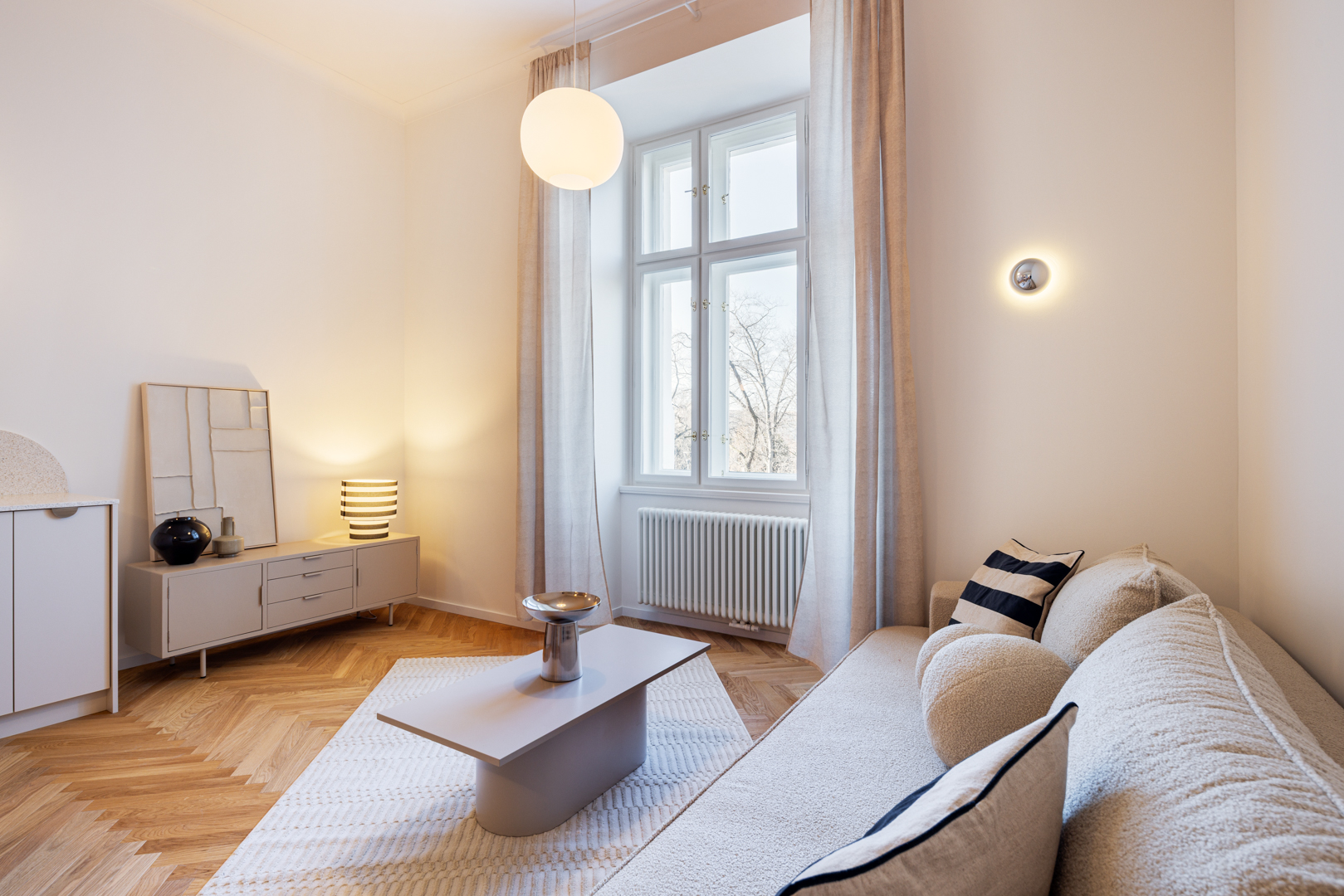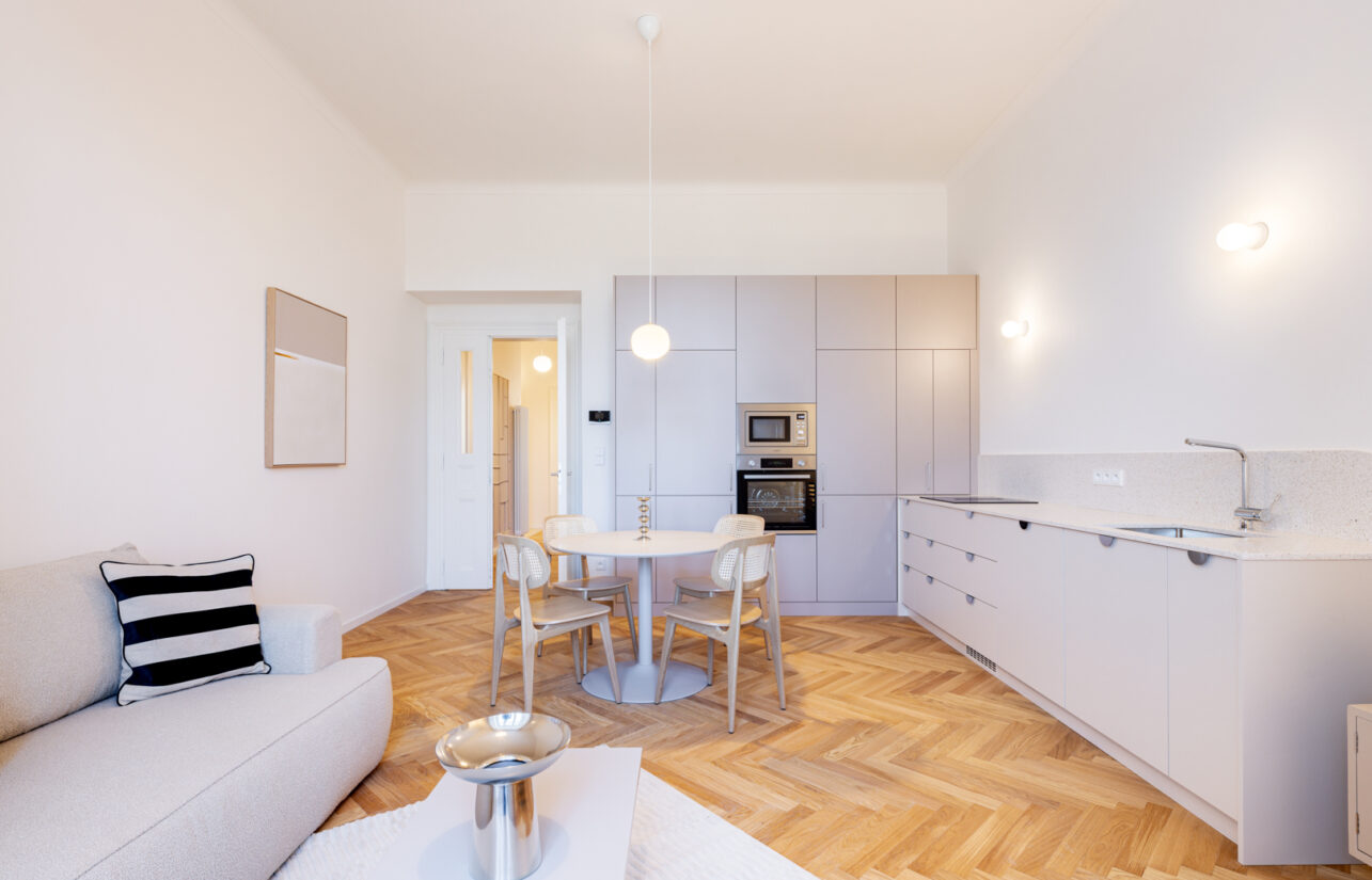 Byt je dokončován s důrazem na kvalitu, nadčasový design a maximální komfort. Rekonstrukce proběhla kompletně a byt bude připraven k nastěhování od 1. 3. Prohlídky jsou možné od 16. 2.